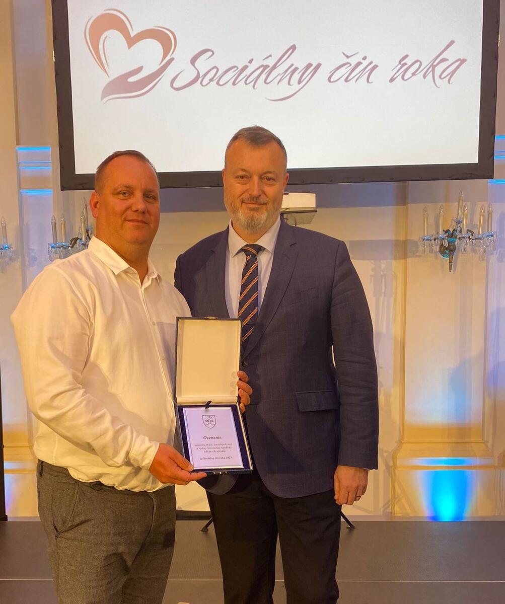 Z rúk predsedu Národnej rady SR a ministra práce, sociálnych vecí a rodiny si prevzal ocenenie Sociálny pracovník roka – Sociálny čin roka 2021 náš kolega Mgr. Rastislav Hochman, kvestor a organizátor pomoci migrantom a ľuďom bez domova. Ocenenie je uznaním jeho viac než 20-ročnej práce so sociálne znevýhodnenými skupinami, ako aj podpory mladých dospelých po odchode z centier pre rodiny a vytvárania pracovných príležitostí pre klientov sociálnych zariadení.