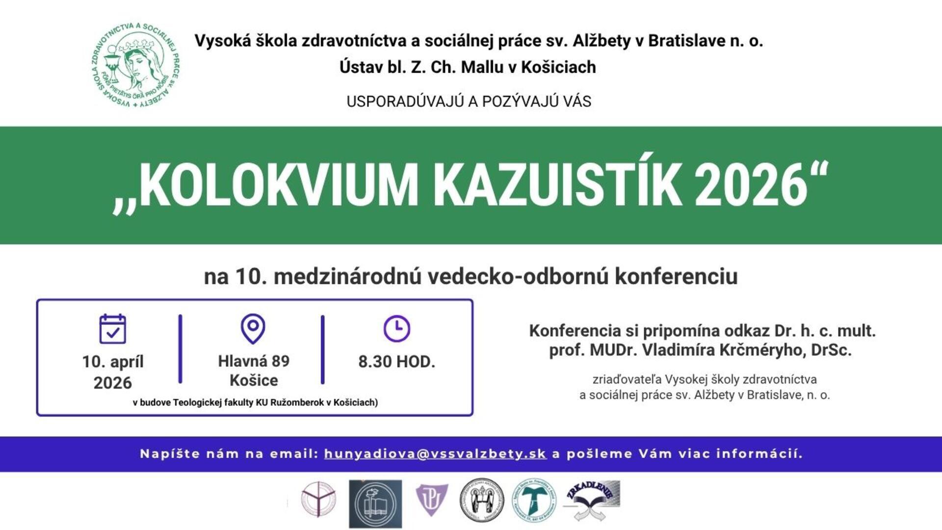 St. Elizabeth University of Health and Social Sciences in Bratislava, n. o., the Institute of Blessed Z. Ch. Mallu in Košice, cordially invites the professional public to the 10th International Scientific and Professional Conference “Case Study Colloquium 2026.”