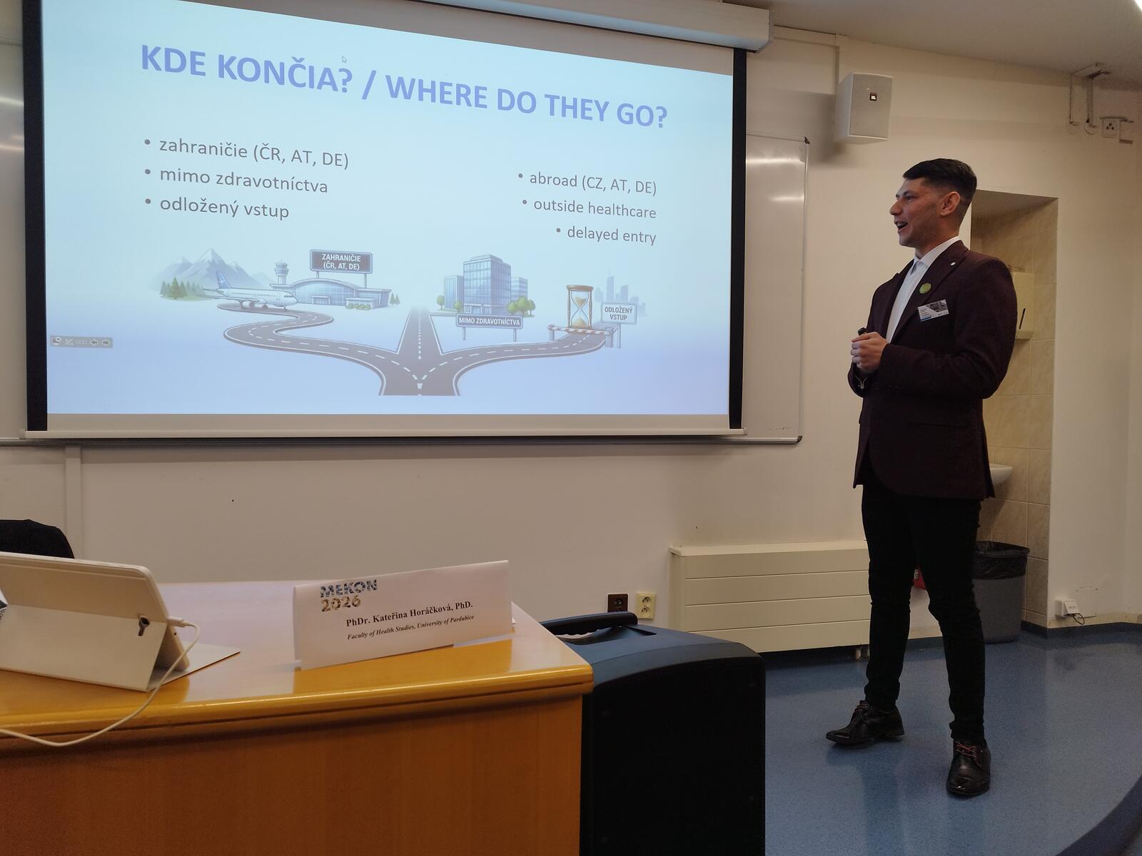 Mimoriadne úspešne si počínali poslucháči 2. ročníka magisterského štúdia ošetrovateľstva. Na XVIII. Celoštátnej študentskej vedeckej konferencii bakalárskych, magisterských a doktorských nelekárskych zdravotníckych odborov, ktorá sa konala 15. apríla 2026 v Pardubiciach obsadili pod vedením vyučujúcej dr. Ševčovičovej popredné priečky. Bc. Adriana Mydlárová získala 2. miesto v posterovej sekcii s témou Skúsenosti sestier s toxickou osobou v pracovnom kolektíve – kazuistika. Jej spolužiak Bc. Norbert Alexander Haseki, dipl. s. si v kategórii študentov magisterských odborov odniesol prvenstvo za prednášku s témou Odchodovosť absolventov ošetrovateľstva na Slovensku.