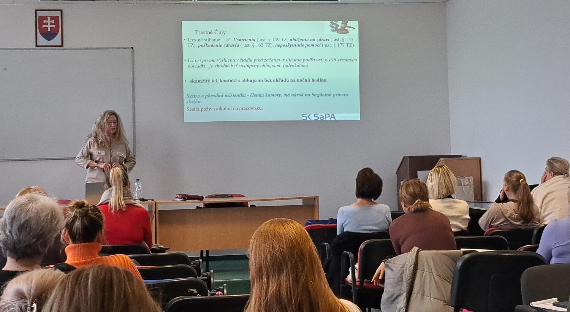 Počas stretnutia ich oboznámila s činnosťou a štruktúrou sesterskej stavovskej organizácie, benefitmi členstva, informovala o sústavnom vzdelávaní i právnom zastúpení členov. Poukázala aj na sťažnosti na sestry zo strany pacientov, možnosti predchádzania konfliktným situáciám, ako aj niektoré špecifické problémy pri výkone povolania a príklady ich riešenia. Stretnutie sa stretlo s pozitívnou odozvou, k čomu prispela aj záverečná diskusia, v ktorej sa poslucháčky zaujímali tiež o identifikáciu sestier a problematiku špecializačného vzdelávania. Ďakujeme za obohacujúce stretnutie a tešíme sa na ďalšiu spoluprácu.